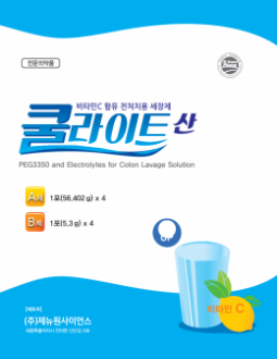 A제 : Polyethylene glycol 3350 50g, Sodium sulfate anhydrous 3.75g, Sodium chloride 1.3455g, Potassium chloride 0.5075g B제 : Ascorbic acid 2.35g, Sodium ascorbate 2.95g